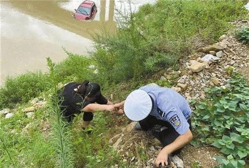 受近日暴雨影响,商洛柞水一司机将车辆驶出路面,坠入河中。柞水交警立即赶赴现场对事故进行处置。赖光垒摄