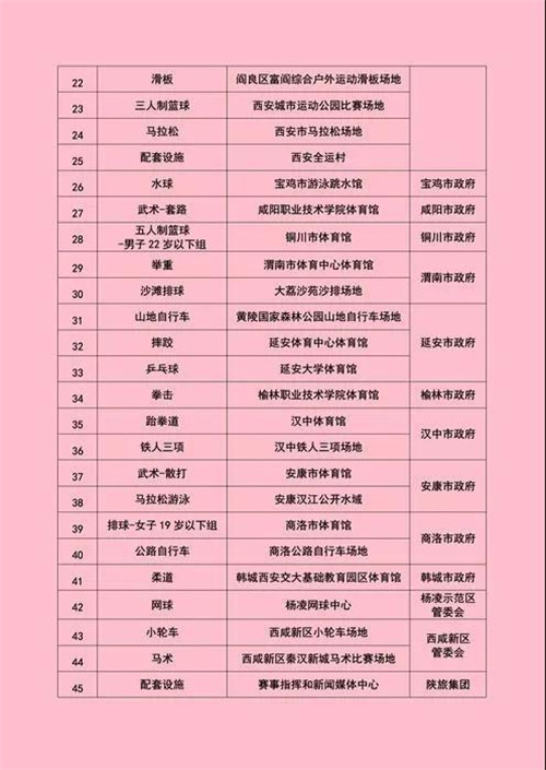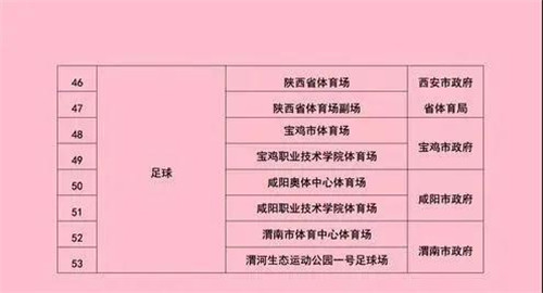 从地域上看,全省场馆以西安为核心、关中为重点、陕南陕北为支撑,其中:西安市26个,宝鸡市3个,咸阳市3个,铜川市1个,渭南市5个,延安市3个,榆林市1个,汉中市2个,安康市2个,商洛市2个,韩城市1个,杨凌示范区2个,西咸新区2个。