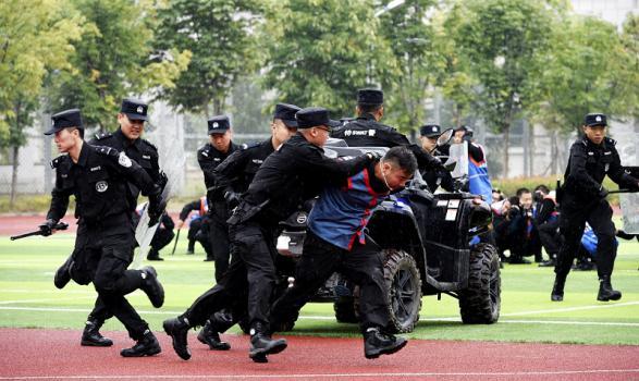 三秦都市报—秦闻讯(吴平 张忠力 记者 石喻涵)监狱内,原本正在排队接受体检和核酸检测的“罪犯”突然情绪激动,手中的板凳变成“武器”,甚至有“罪犯”冲向监门方向开始强行冲监……监狱特警和警犬队随即出动,按照应急处突预案,不到10分钟将事件处理完毕。这是9月9日上午,全省监狱特警集训班结业仪式上的演练内容之一。
