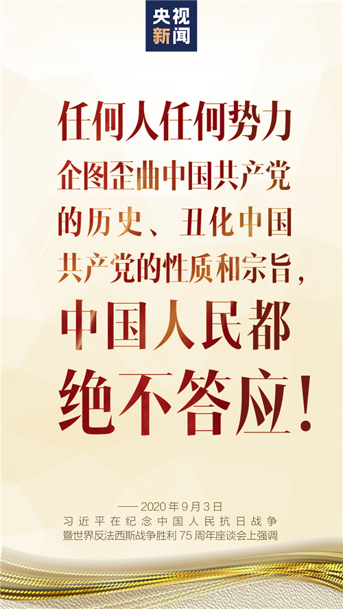 任何人任何势力企图歪曲中国共产党的历史、丑化中国共产党的性质和宗旨,中国人民都绝不答应!
