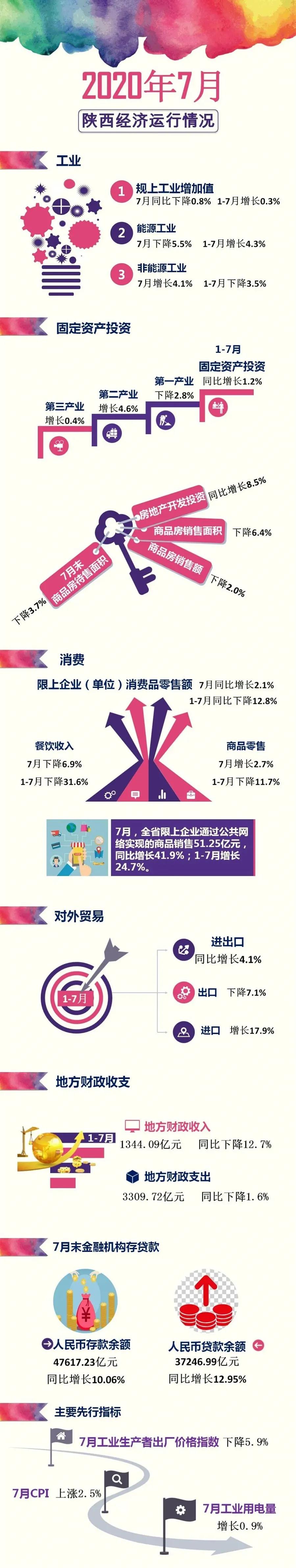总体来看,7月份全省投资、消费持续回升,但工业增长放缓,外部环境严峻复杂,经济发展面临的困难和挑战增多。下阶段,要认真贯彻习近平总书记来陕考察重要讲话重要指示精神,紧盯重点行业全力稳定工业运行,加强项目谋划巩固投资回升基础,扩大内需力促消费较快回升,做好“六稳”工作,落实“六保”任务,努力实现经济社会发展目标任务。