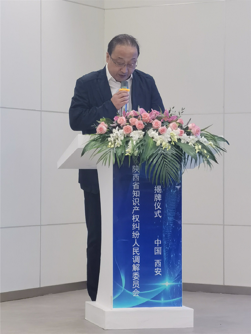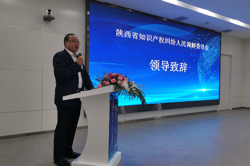 揭牌仪式上,省司法厅人民参与和促进法治处处长华文胜宣读了《关于设立陕西省知识产权纠纷人民调解委员会备案报告的回复》,省高级人民法院、省司法厅、省知识产权局有关领导为知识产权纠纷人民调解员颁发了聘书并讲话。