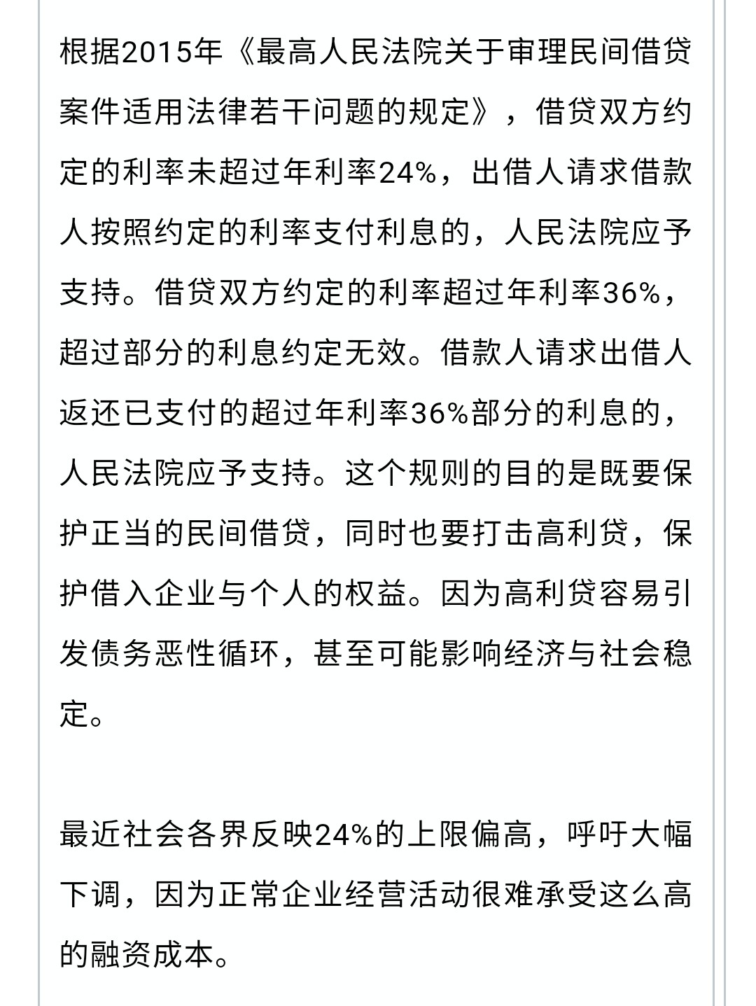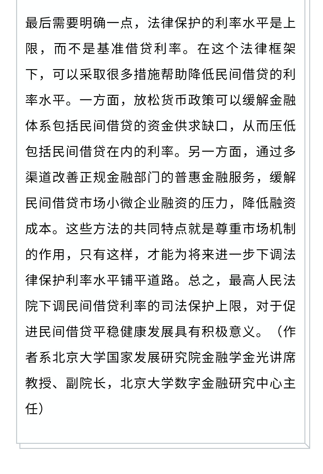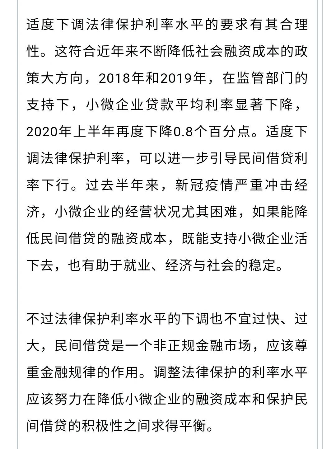下调民间借贷利率的司法保护上限 促进民间借贷平稳健康发展