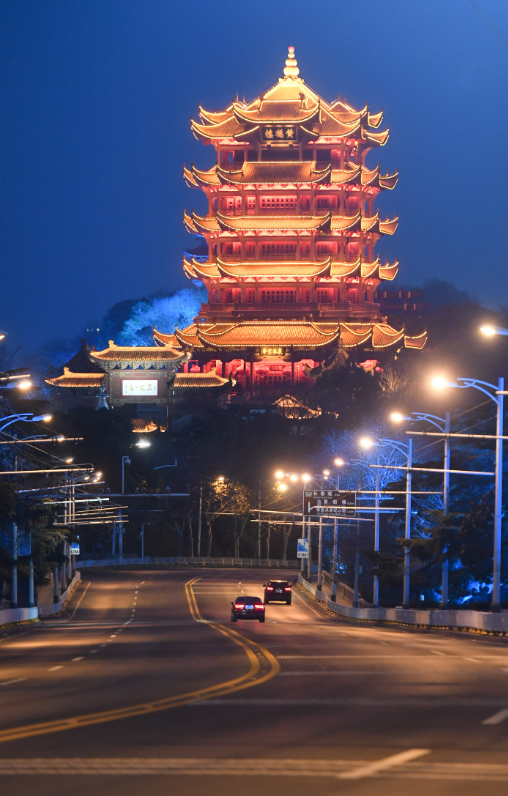 ↑武汉黄鹤楼夜景。新华社记者陈晔华摄