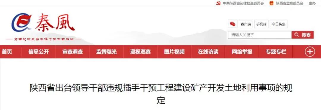 (点击“阅读原文”查看《陕西省严禁领导干部违规插手干预工程建设、矿产开发、土地利用事项的规定》文件全文)