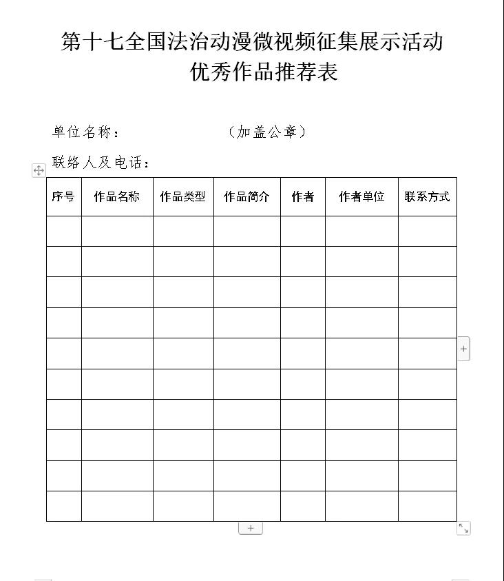 1.第十七届全国法治动漫微视频征集展示活动优秀作品推荐表