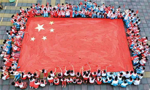 社会主义办学方向是我国教育最鲜亮的底色,我国教育要培养的是社会主义建设者和接班人,这是个根本性的问题。图为山东省沂源县荆山路小学开展“红领巾拼国旗祝福祖国迎国庆”活动,学生们在老师带领下用红领巾拼出了一面巨型国旗,表达对伟大祖国的祝福。教育部供图