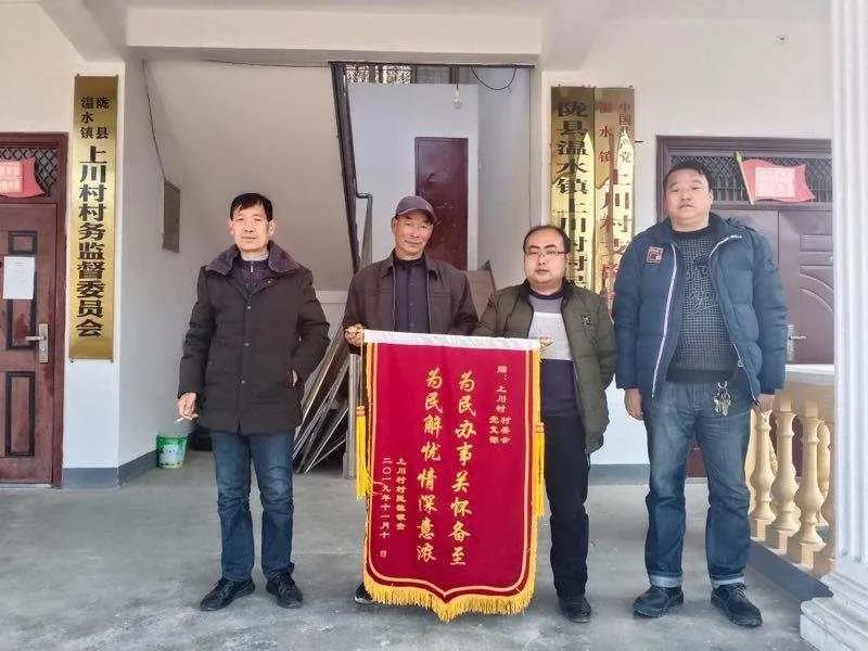陇县温水镇村干部解决了群众燃眉之急,群众送来锦旗感谢