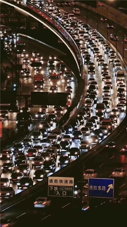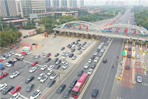 10月8日,车辆在S9902新元高速石家庄裕华路口缓慢通行(无人机照片)。新华社记者 朱旭东 摄