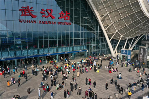 10月8日,旅客在武汉火车站东广场准备进站乘车(无人机照片)。新华社发(赵军 摄)