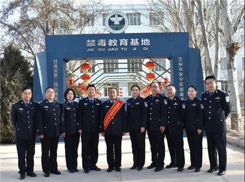 2019年在甘肃省第二强制隔离戒毒所禁毒教育基地前(左五)。