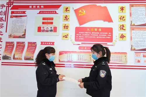 2020年2月在甘肃省女子强制隔离戒毒所一大队党员活动室。这张照片的我,在疫情封闭执勤期间,受到鼓舞向支部书记提交入党申请书。