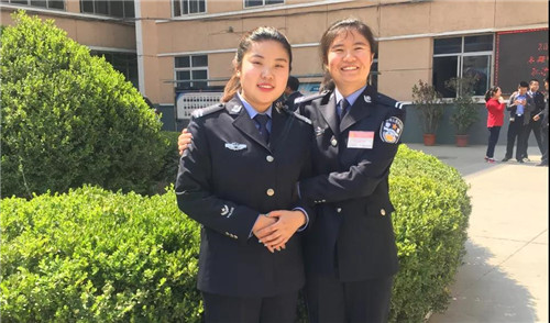 (左一)2016年5月在甘肃省司法警官培训中心。这张照片中的我,刚刚结束50天的新警培训,准备走上工作岗位。