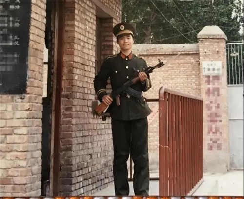 年轻时的我,在站岗值勤,维护场所安全稳定。