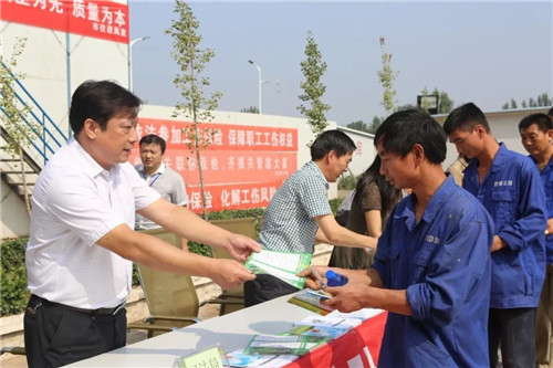 2014年8月28日在“送法进工地”现场我与普法志愿者一起走进工地,为农民工赠送普法宣传资料、开展法治宣传活动。像这样的普法活动,每年我都要组织和参加很多次。