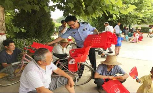 2019年7月在陕西省武功县下乡普法、宣传“扫黑除恶”知识。