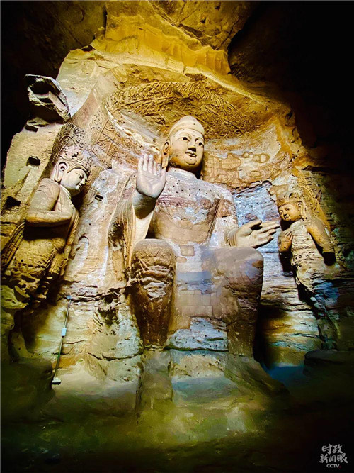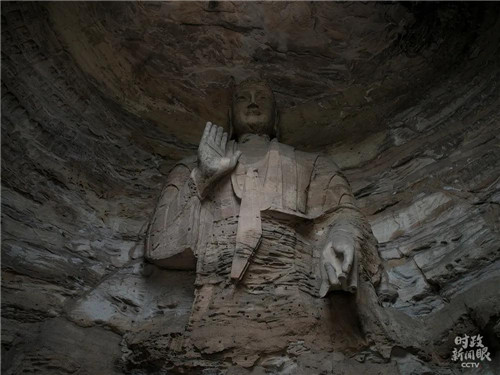 第3窟是云冈最大的洞窟,又名“灵岩寺”,属于中期石窟。主尊阿弥陀佛高10米。(记者李辉拍摄)