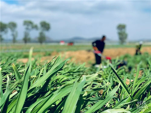 习近平考察的有机黄花标准化种植基地去年产值6500万元,贫困户户均收入14800元。基地工作人员说,今年克服疫情影响,预计产值可达8000万元。(记者康晓宇拍摄)