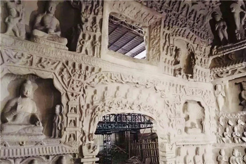 2018年10月,云冈石窟研究院与浙江大学合作利用3D打印技术复制出第12窟“音乐窟”。这座高9米、宽11米的大窟实现了积木式拆装,5辆标准集装箱车就可拉运,一周即可组装完成布展。