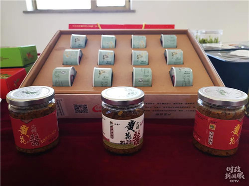 以黄花为原材料制作的黄花饼、黄花酱、真空冻干黄花。(记者张晓鹏拍摄)