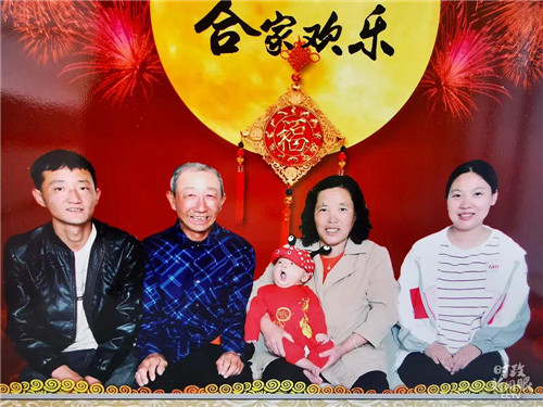 这是今年4月,白利军的儿子过满月当天拍摄的全家福。(记者史伟拍摄)
