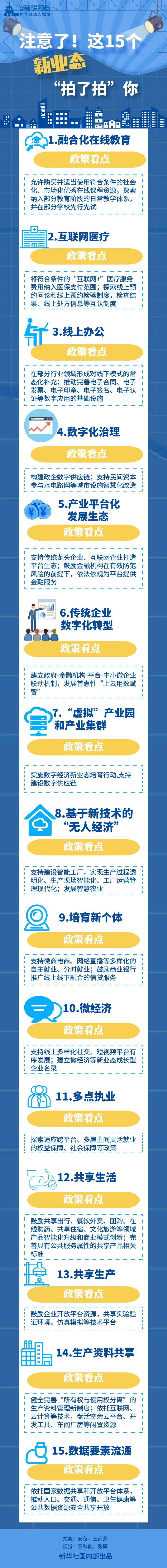 在线教育、远程办公、共享员工、无接触配送……疫情期间,数字经济新业态新模式快速发展。15日,国家发展改革委等13部门公布相关意见,提出发展15种新业态新模式的一系列政策措施。这些新业态,将给你我生活带来哪些改变?