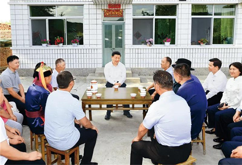 2019年7月15日至16日,中共中央总书记、国家主席、中央军委主席习近平在内蒙古考察并指导开展“不忘初心、牢记使命”主题教育。这是15日下午,习近平在赤峰市喀喇沁旗河南街道马鞍山村村民张国利家,同基层干部群众代表座谈交流。新华社记者 谢环驰/摄