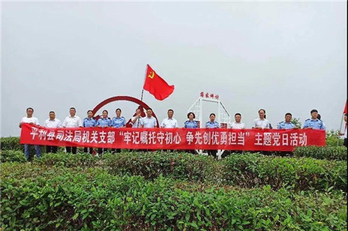 在建党99周年来临之际,安康市平利县司法局机关支部组织党员干部到老县镇蒋家坪村凤凰茶山开展主题党日活动,并联合老县镇社治办支部、东河村支部开展“学习贯彻习近平总书记来陕考察重要讲话重要指示精神,牢记嘱托守初心,争先创优勇担当”庆“七一”活动。