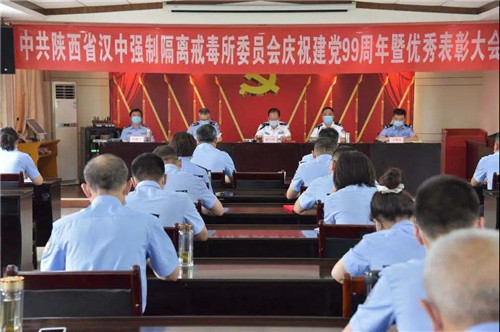 汉中戒毒所隆重召开庆祝建党99周年暨先进表彰大会。通过表彰先进典型,重温入党誓词,开展演讲比赛等方式,献礼党的99周年华诞。