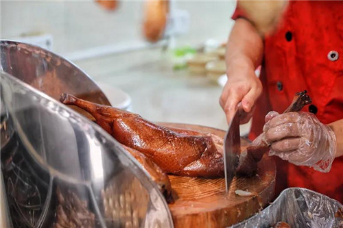 烧腊师傅手起刀落,精准斩件,一气呵成。求是记者张芯蕊 摄