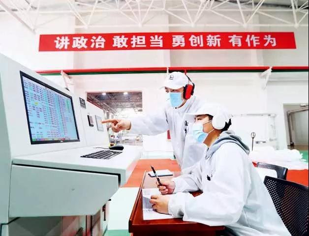 中国石化燕山石化熔喷布装置技术人员正在调整工艺参数。图/周宇杰 摄