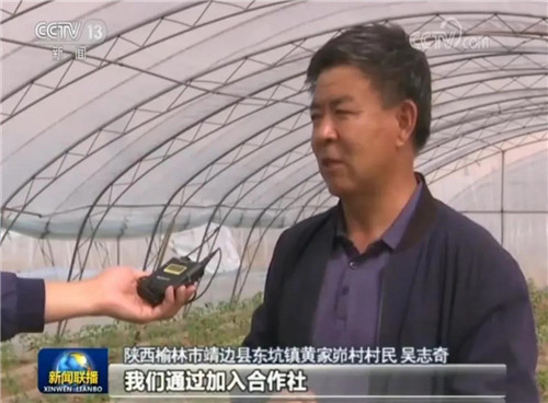 陕西榆林市靖边县东坑镇黄家峁村村民 吴志奇:我们通过加入合作社,种植大棚5个,大田60亩,像我们一年固定收入是8万元。