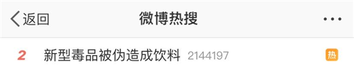 很快,微博话题#新型毒品被伪造成饮料#就冲上热搜第二↓↓↓