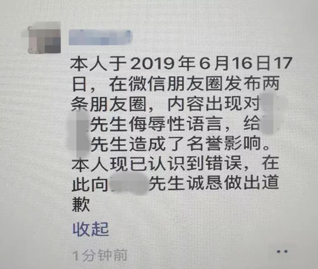 △2020年8月7日,李某在朋友圈发布道歉消息。