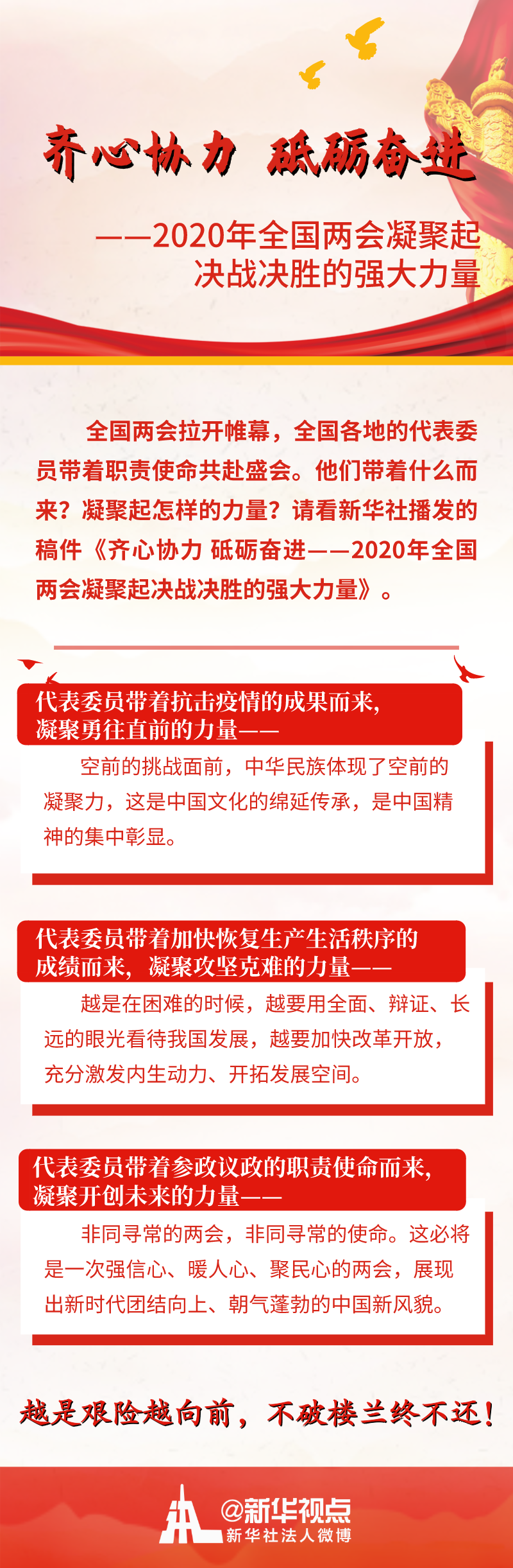 特殊背景、特殊节点的全国两会拉开了大幕,全国各地的代表委员带着职责使命共赴盛会,必将激发“越是艰险越向前”的精神,坚定“不破楼兰终不还”的意志,凝聚起中华儿女决战决胜的强大力量。