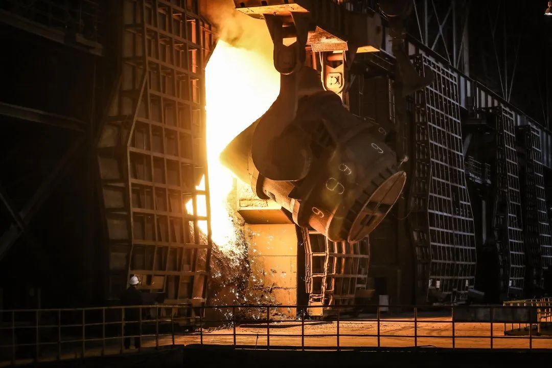 工人在鞍钢集团鞍钢股份炼钢总厂炼钢四作业区进行生产作业(2019年7月5日摄)。新华社记者 潘昱龙 摄